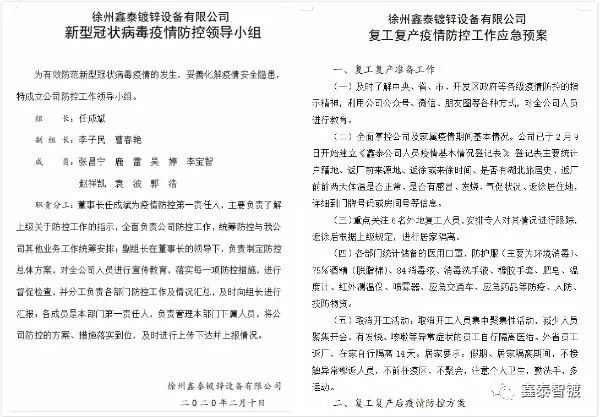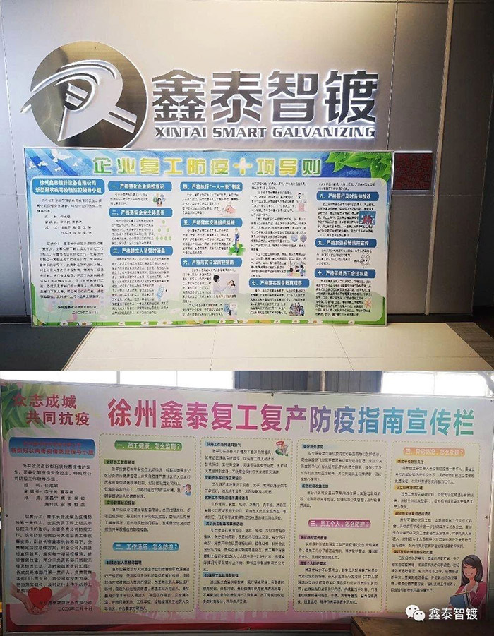 徐州鑫泰鍍鋅設(shè)備有限公司迅速成立以董事長任成斌為組長的疫情防控領(lǐng)導(dǎo)小組,制定