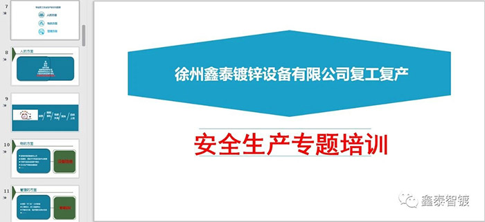 制作“徐州鑫泰鍍鋅設(shè)備有限公司安全生產(chǎn)專題培訓(xùn)課件”,供大家自習(xí)。